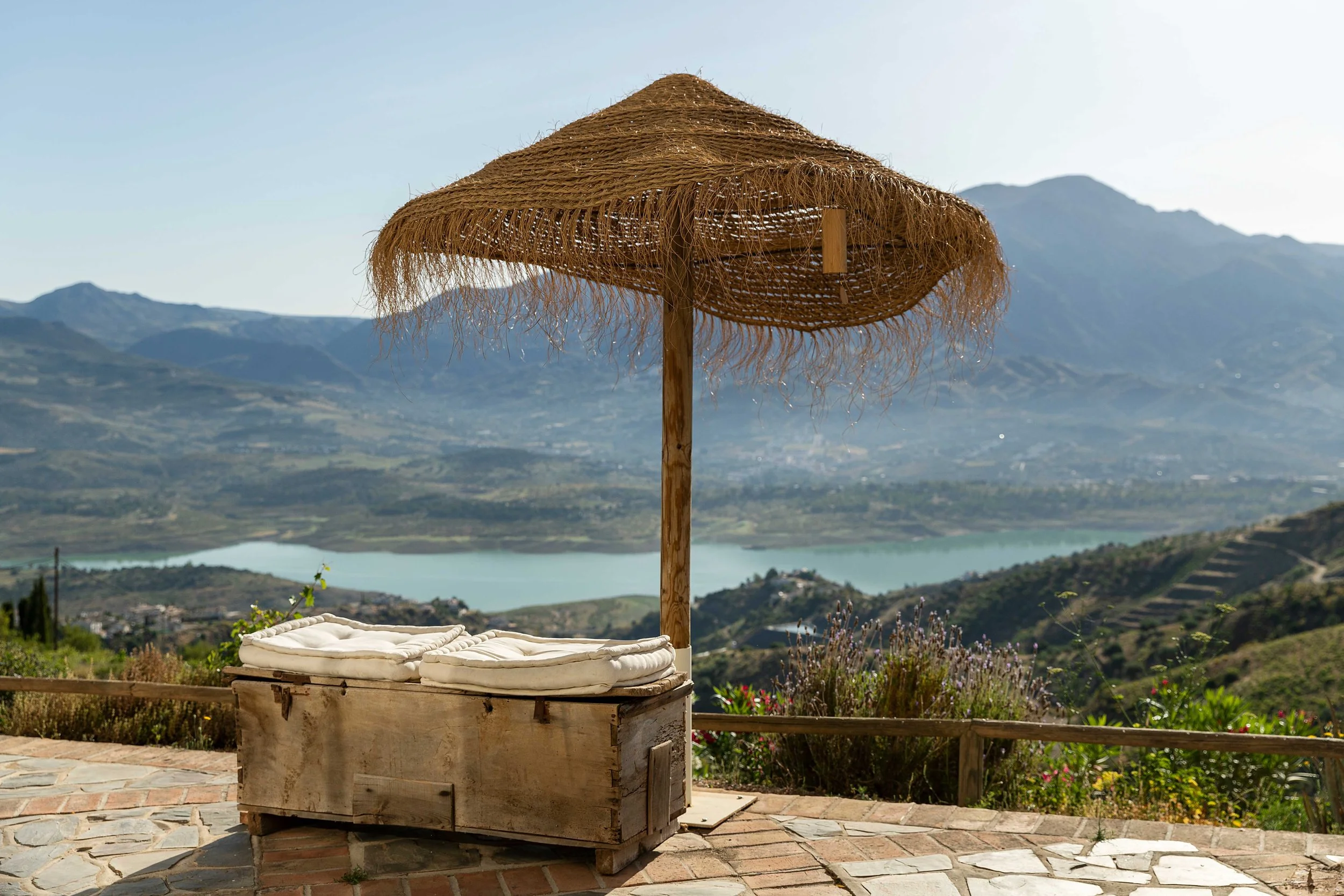 Our villa, set in the serene Andalusian countryside, combines elegant design, olive groves, a sparkling pool, and breathtaking mountain and reservoir views – a luxurious sanctuary.